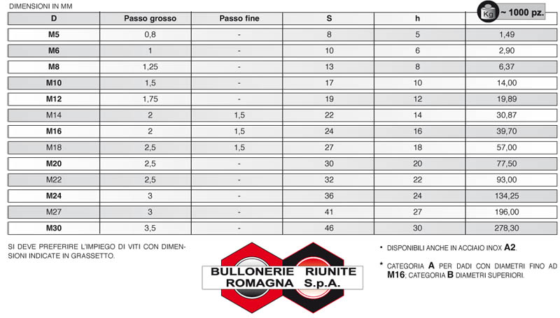 Materiale:• Acciaio 8 secondo UNI EN 20898/2